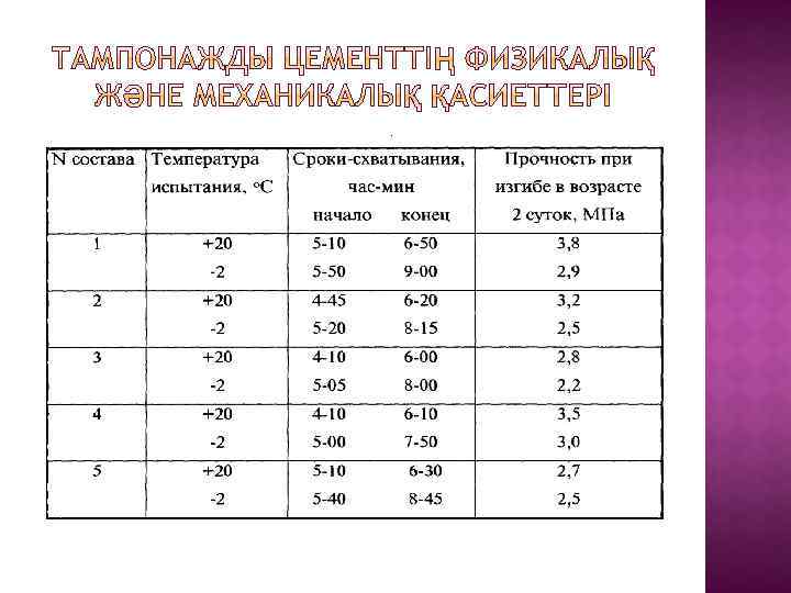 Жеңілдетілген тампонажды цемент ОТЦ -Н Жайылган тампонажды цемент ТПЦР 120 Ауырлатылған тампонажды цемент ЦТУ -100 Циклді ауысатын температуралар үшін тампонажды цемент ЦТПН Ыстыққа төзімді ауырлатылған тампонажды цемент ЦТТУ-160
