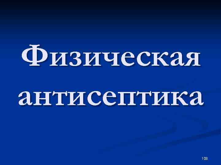 Физическая антисептика Группа 1 n Воздействующие непосредственно на микроорганизмы или создающие условия их выделения различные дренажи n Резиновые полоски, трубки, марлевые и т. д. 108