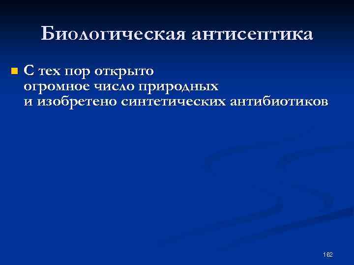 Биологическая антисептика n С тех пор открыто огромное число природных и изобретено синтетических антибиотиков 162