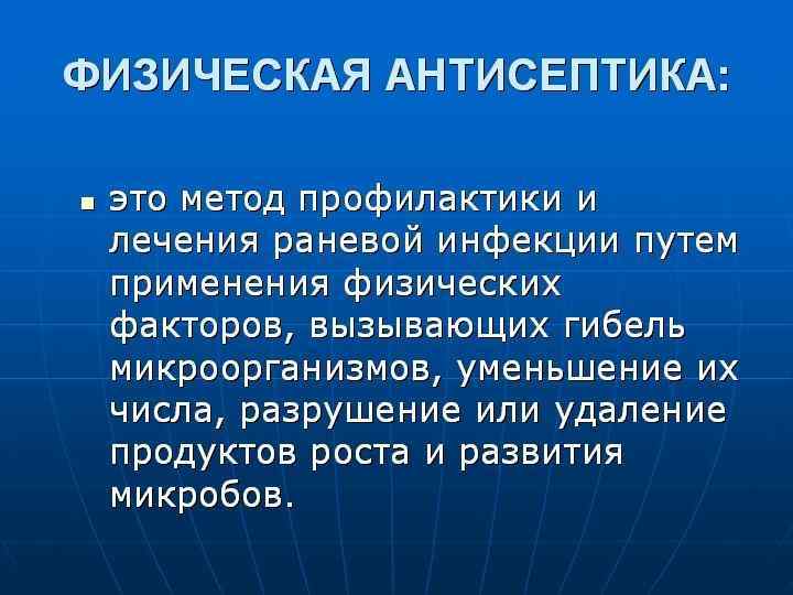 Асептика – система профилактических мероприятий, направленных на предупреждение попадания микроорганизмов в рану, ткани, органы, полости тела больного при хирургических операциях, перевязках, эндоскопии и других лечебных и диагностических манипуляциях.