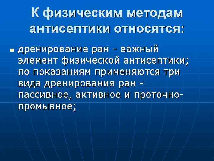 Источники попадания микроорганизмов в рану 1 Экзогенный источник – попадание микробов в рану из внешней среды: n Из воздуха – с частицами пыли, на которых оседают микробы n Воздушно-капельная контаминация – при разговоре, чихании и кашле n Из раневого отделяемого гнойных ран пациентов – при контакте, во время перевязок n Различные бытовые загрязнения 2 Эндогенный источник – попадание микробов в рану из очагов латентной инфекции, находящихся в организме (кариес, тонзиллит, аднексит и др. )