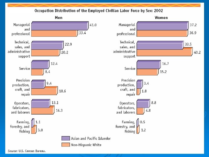 Government Policies (continued) Of every 100 Filipinos coming to California between 1920 -1929, 93 were male. Ø 1924 - California growers, faced with the loss of Mexican labor because of quota restrictions in the Immigration Act recruited Filipinos. Ø Many young Filipino males went to urban areas seeking jobs. Discrimination, along with lack of education and job skills, resulted in their getting only low-paying domestic and personal service work in hotels, restaurants, other businesses, and residences. Ø Feeling that they were being exploited by their employers, Filipinos often joined unions (or formed their own unions when denied membership in existing unions) and went on strike, intensifying management resentment. Ironically, the union hierarchy also disliked them and later joined in efforts to bar Filipinos from the U. S. Ø