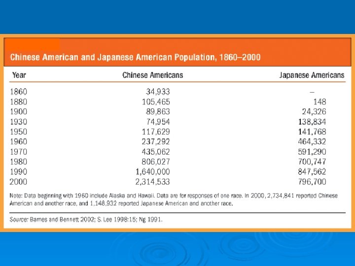 Government Policies (continued) Most Chinese who came in the 19 th century were farmers, artisans, craftsmen, political exiles, and refugees. Many were sojourners. Ø Visible because of their race, appearance, and practices, the Chinese aroused both curiosity and suspicion. Ø A major social problem affecting most Asian immigrants through the 1940 s was the shortage in the U. S. was the shortage of Asian women. l After World War II a greater number of Asian women migrated to the U. S. Ø The Chinese built much of the western part of the transcontinental railroad and cost the railroad company 2/3 as whites to maintain. Ø