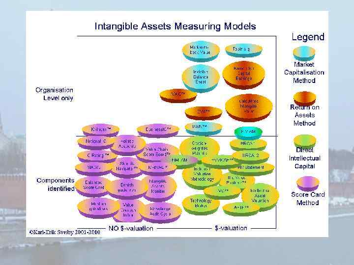 Мониторинг неосязаемых активов (Карл-Эрик Свейби) (Intangible Assets Monitor - IAM) www. celemi. com www. sveiby. com Идея метода: Показатели соотносятся с одним из четырех способов создания стоимости: • Рост рассматриваемых активов; • Уровень их обновления; • Насколько эффективно компания использует неосязаемые активы; • Риск потери этих активов.