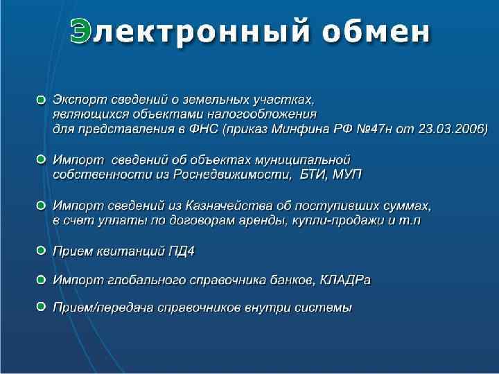 Преимущества, достигаемые при внедрении компьютеров: • полная стандартизация при сборе и обработке информации; • ускорение процесса первоначальной регистрации титула; • снятие проблем с хранением данных; • снятие проблемы дублирования функций; • упрощение доступа к сведениям о земле, обеспечение разграничений прав доступа; • сокращение времени и стоимости передачи прав собственности при осуществлении операций с землей и недвижимостью; • упрощение оценки и анализа стоимости земли и недвижимости; • внутренний контроль качества данных. 74
