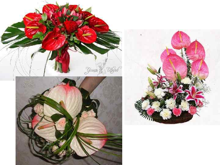 Цветки антуриума ценятся не только за оригинальную форму, но и за продолжительную жизнь в воде. Срезку перед составлением букета рекомендуется на ночь поставить в теплую воду с температурой +40 градусов. Срезка сохраняет свежесть в воде до 3 -4 недель. Обращаться с антуриумом нужно осторожно, так как стебли содержат ядовитый сок.
