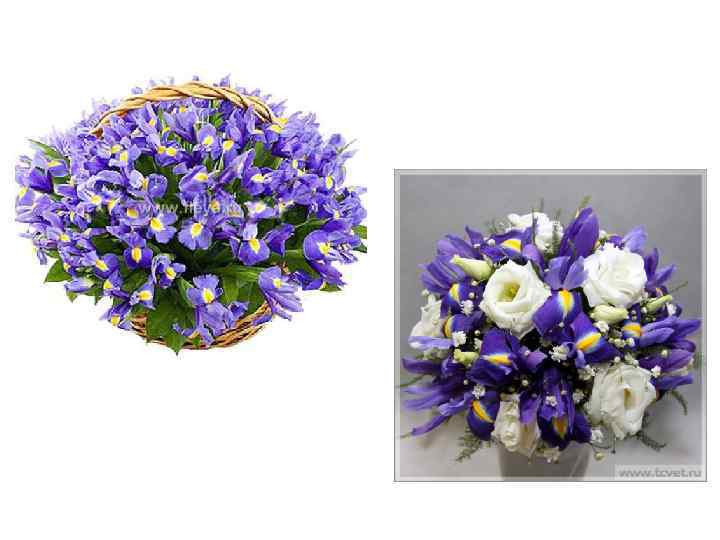 Ксифиум Иначе: Ирис голландский Латинское название: Xiphium Семейство: Ирисовые (Iridaceae) Стебель: облиственный, прочный, несет 2 -3 цветка Строение цветка: цветки простые, с тремя внутренними, направленными вверх, долями околоцветника (лепестками) и тремя наружными, горизонтальными или слегка опущенными лепестками Особенности культуры: очень восприимчив к серой гнили (ботритису); при перенесении цветов с холода в тепло усиливается конденсация влаги на растениях, что стимулирует ботритис; нельзя оставлять цветы без воды; быстро засыхают в тепле, поэтому рекомендуется брать из холодильника небольшими партиями. Цветки ксифиумов бывают раскрытыми 15 дней, т. е. значительно дольше, чем корневищных ирисов. Хорошо стоят в букетах. На сегодняшний день в Голландии выращивают более 150 сортов.