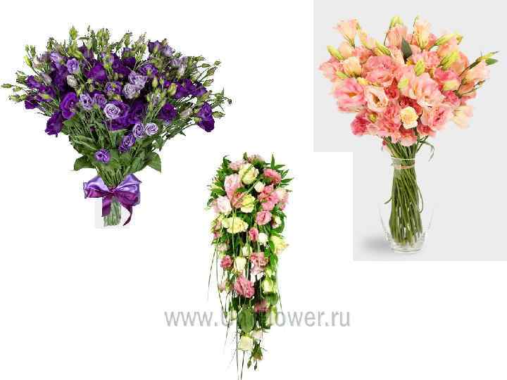 Лизиантус Иначе: Эустома Обиходное название: Техасский колокольчик (Texas Bluebell), Горечавка Прерии (Prairie Gentian), Тюльпановая горечавка (Tulip Gentian), Горечавка (Gentian) Латинское название: Eustoma Ассортимент видов и сортов: Эустома крупноцветковая или Лизиантус Рассела Строение и окраска листьев: листья ланцетные, голубовато-зеленые, супротивные Стебель: стебли разветвленные, до 90 см высотой Строение цветка: цветки крупные, воронковидные, простые из 5 лепестков или махровые, напоминают колокольчики