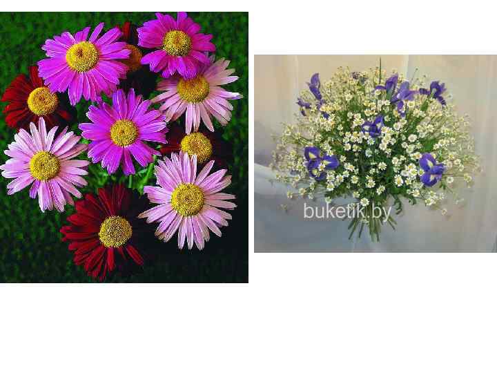 Пиретрум Латинское название: Pyrethrum Семейство: Сложноцветные (Compositae) Ассортимент видов и сортов: Пиретрум розовый (Pyrethrum roseum, syn. Chrysanthemum coccineum); Танацетум, или пиретрум девичий, или матрикария (Pyrethrum parthenium, syn. Matricaria eximia, Chrysanthemum parthenium, Tanacetum parthenium) Происхождение: Пиретрум розовый - Предкавказье, Восточное Закавказье Жизненная форма растения: травянистое Строение и окраска листьев: листья сочнозеленого цвета, очередные, рассечены на узкие сегменты Стебель: стебель прямосточий, опушенный, высотой 30 -60 см Строение цветка: серединные цветки — трубчатые, мелкие, желтые, краевые - язычковые, белые или розовые, различных оттенков, вплоть до ярко-малиновых Строение соцветия: одиночные корзинки