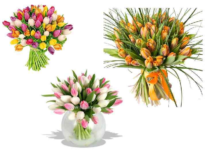 Уход и содержание: не держите цветы долго в лежачем положении (особенно на свету), чтобы не искривились стебли; подрежьте концы на 1 -1, 5 см; оставьте в воде в упаковке на 1, 5 ч; емкости и вода должны быть чистыми; если стебли искривлены, рекомендуется снова подрезать стебли, туго обернуть бумагой и поставить в баки с холодной водой в прохладное место на несколько часов; Особенности культуры: рост тюльпанов продолжается и в срезке; цветки раскрываются в дневное время и закрываются ночью