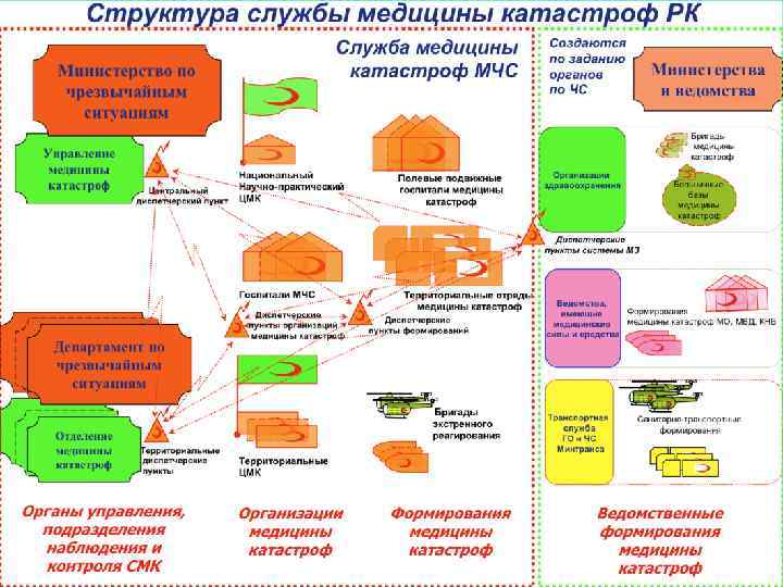 Апаттар медицинасы Орталығы • Апаттар медицинасы Орталығы (АМО) апаттар медицнасы саласында мемлекеттік мекемелер арасындағы өзара қарымқатынасты жүзеге асыратын координирлеуші мекеме болып табылады. • Қазастанның барлық аумақтарында халықты уақытылы шұғыл медициналық және психологиялық көмекпен қамтамасыз ету, сонымен қатар техногенді және табиғи сипаттағы төтенше жағдайлар зонасында медико-санитарлық салдарларды жою мен алдын алу мақсатында, ҚР басқармасының 2010 жылғы 28 қантардағы № 30 бұйрығына сәйкес, Апаттар медицинасы Орталығына 10 территориальды филиалдар берілді.