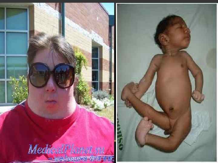 ДАУН СИНДРОМЫ(21+) Бұл ауруды алғаш рет 1855 жылы Л. Даун сипаттаған. 1958 жылы Ж. Лежен оның себептерін анықтаған. Орташа кездесу жиілігі 1/700 дей шамасындай. Клиникалық сипаты: ақылестің кем болуында. Оның себебі 21 хромосоманың q 22. 3 аймағындағы супероксиддисмутаза генінің дозасының көбеюі. Оларды оқытып-үйретуге болады, бірақ жазу, санауға үйрету мүмкін емес. Фенотиптік сипаттары: бойлары аласа, шүйдесі тегіс, мұрындарының түбі жалпақ, кеңсірікті, көздері қысыңқы, бас сүйектері кішкентай трахицефальді болып келеді.