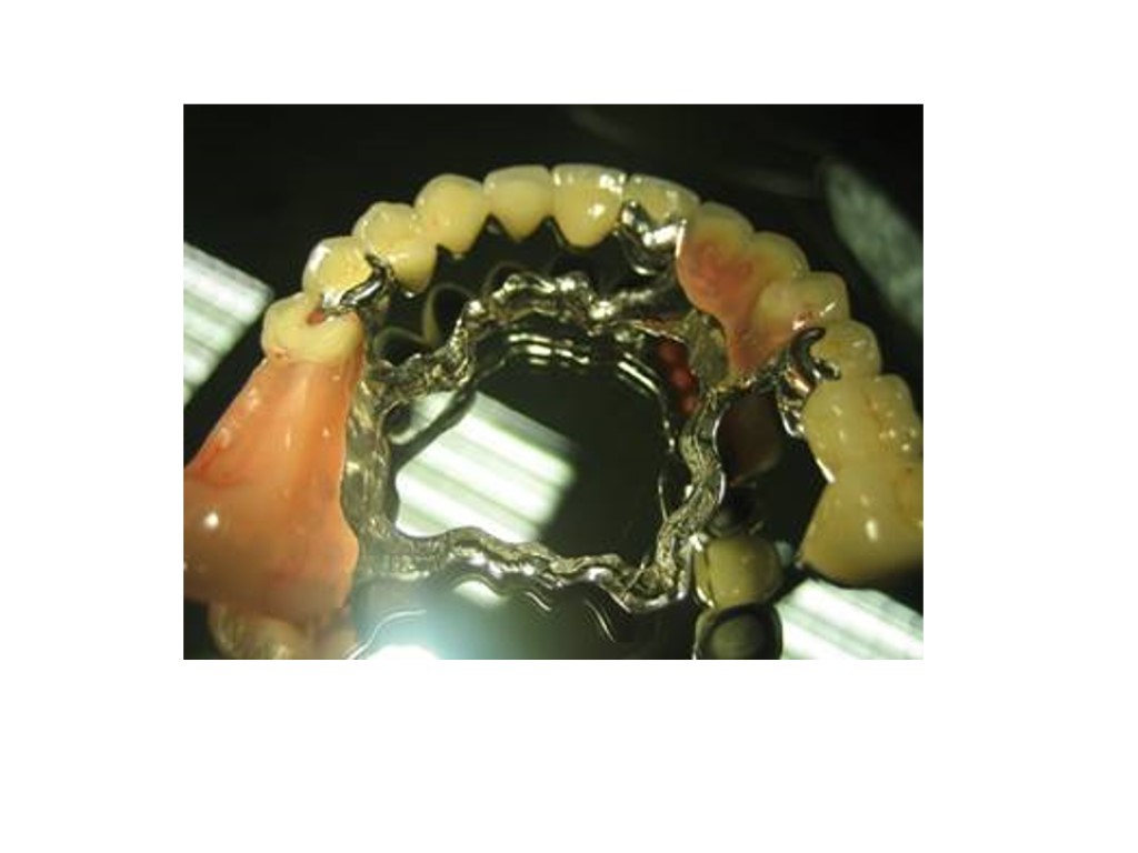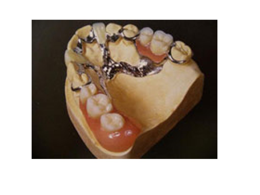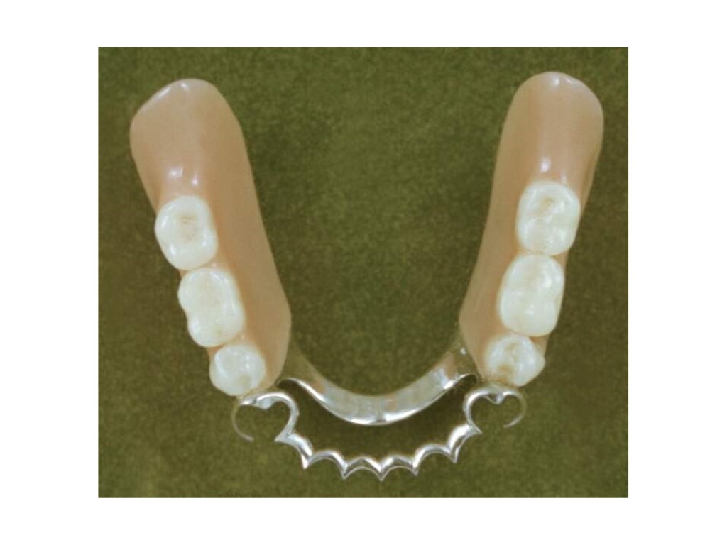 Доғалы протездер. Негізгі құрылымдық бөліктері Доғалы протездер үш бөліктен тұрады : 1. металл каркас 2. пластмасса базис 3. жасанды тістер. Металл каркас үш бөліктен тұрады : 1. металл доғадан; 2. бекіту элементтерінен; 3 ершік бөлігінен.