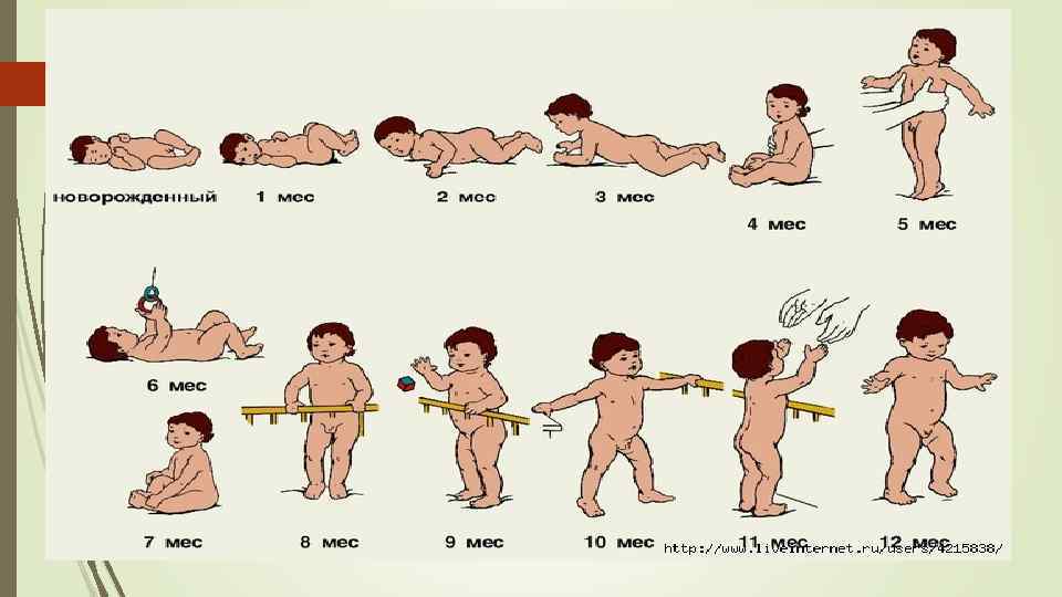 6 ай 7 ай 8 ай Етпетинен жатып арқасына аударылады Жаксы еңбектейді Өзі Екі қолынан отырады, тіре жетектесе уден ұстап жүреді журеди Әр түрлі қалыптан ойыншықты алады Ойыншықтар ды бір-біріне соғып ойнайды Ойыншықтар Қорапты мен узак түріне қарай ашып уақыт домалатып жабады, жина ойнайды Сөз буындарын айта бастайды Былдырлап Буындарды бир нарселер дауыстап айтады Жауап берсе Сөздер елеңдейді қайталайды Мама т. б сөздер айта бастайды 8 -10 сөз айта алады Бер деген Шапалактау суракка тисті ын сураса затты табады шапалақтайд ы Дене бөліктерінің атын біледі Өз атын біледі Болымсыз өтініштерді орындайды Тусінетін сөздері көбейеді Кеседен ішеді Кесені өзі алып ішеді Кеседен ұрттап ішеді Нанды өзі ұстап жейді 9 ай Кесені ұстап Кеседен тұрып ішеді 10 ай 11 ай 12 ай Аласа жерге өзі шығып түседі Тіреусіз тұра Өзі жүре алады бастайды Пирамида сиякты ойыншықты жинайды