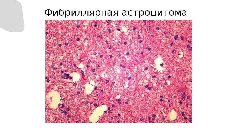 • Фибриллярная форма астроцитомы. Этот доброкачественный вид новообразования, но возможность ее перехода в злокачественную форму увеличивается. У опухоли нет четкости, растет намного быстрее, чем пилоцитарная астроцитома. Терапия, в том числе и хирургическое вмешательство, не дает 100% хорошего результата. Чаще всего эта форма выявляется у молодых людей до 30 лет. Формы опухоли