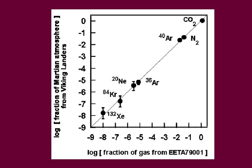 How do we know they are from Mars? • Most have young crystallization ages (1. 35 and 0. 15 billion years) • Gases in glass in meteorites match Mars