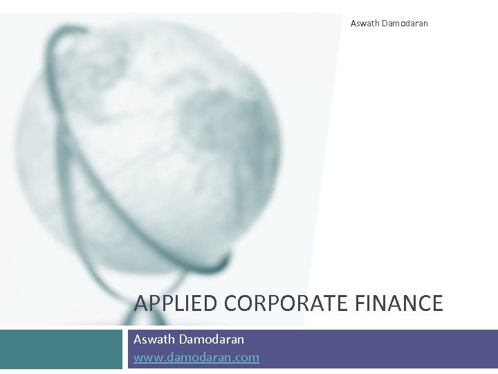 Aswath Damodaran APPLIED CORPORATE FINANCE Aswath Damodaran www. damodaran. com