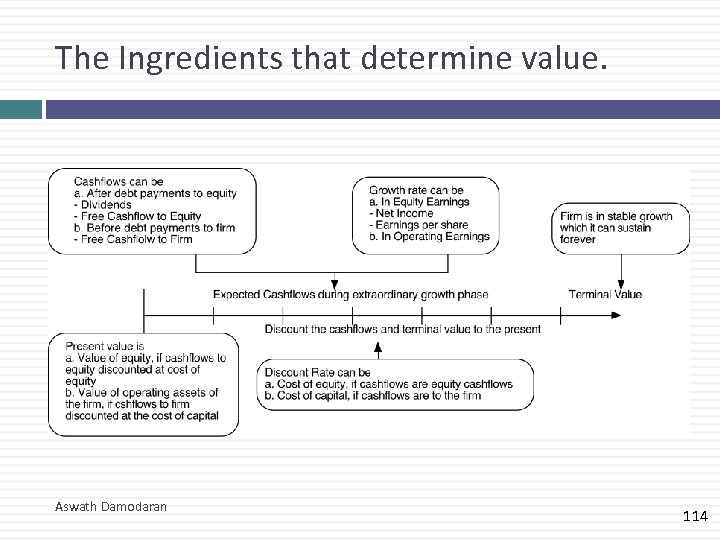DCF Choices: Equity Valuation versus Firm Valuation: Value the entire business Equity valuation: Value just the equity claim in the business 113