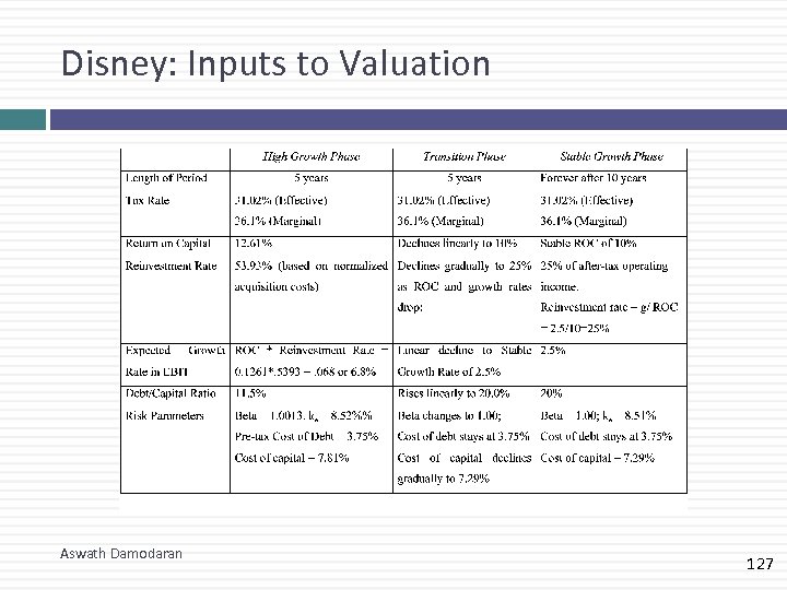 Disney: Inputs to Valuation Aswath Damodaran 127