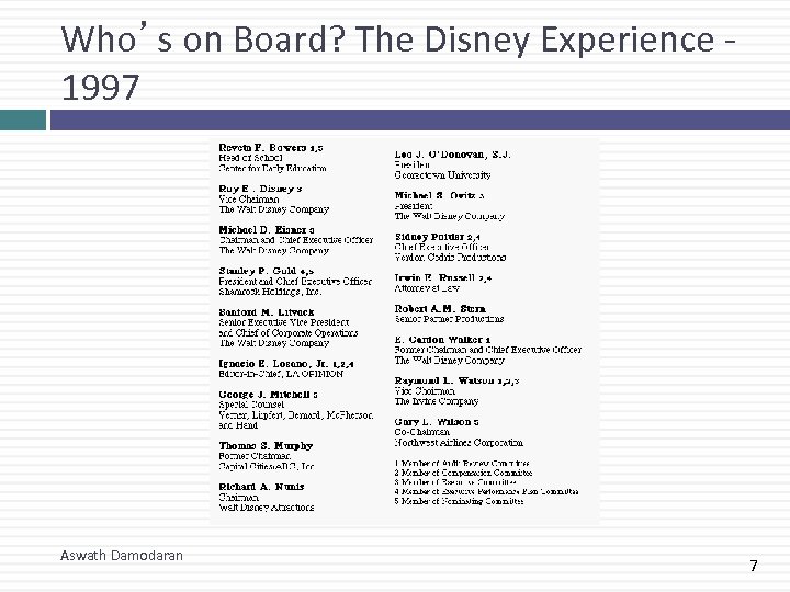 Who’s on Board? The Disney Experience - 1997 Aswath Damodaran 7