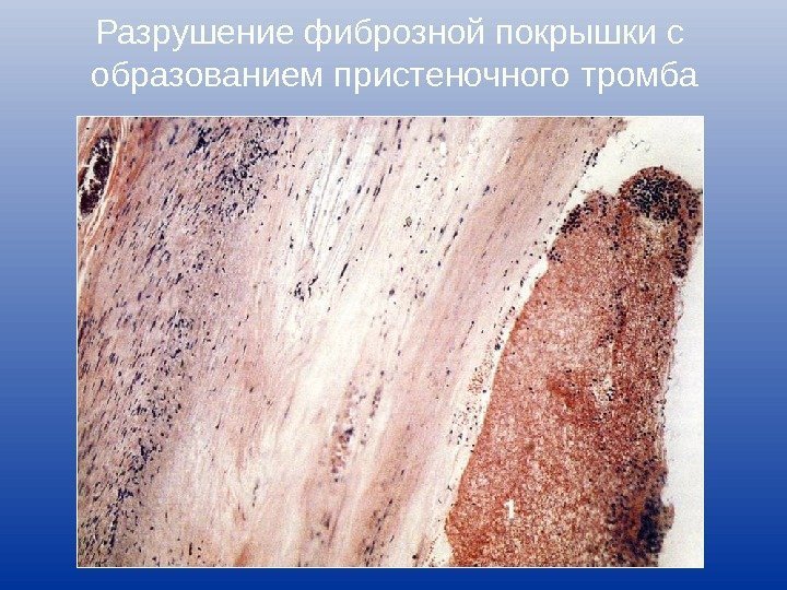 Разрушение фиброзной покрышки с образованием пристеночного тромба