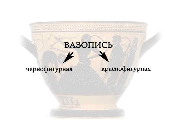 Фон был черным, а изображения имели цвет обожженной глины (красновато - коричневый) – такую роспись называли краснофигурной. Фактически краснофигурная роспись – это чернофигурная вазопись наоборот. Перед обжигом на поверхность подсохшей вазы наносились контуры человеческих фигур и остальные детали изображения.