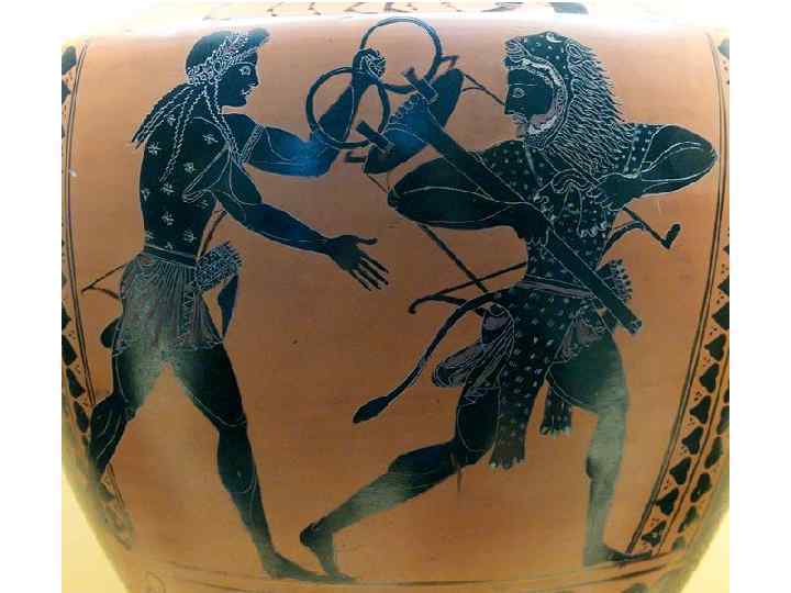 «Геракл и немейский лев; Геракл и Тритон» Гидрия чернофигурная. Манера мастера Антимена. Глина. Резьба, белая краска. 520 -500 гг. до н. э. Санкт-Петербург, Государственный Эрмитаж.