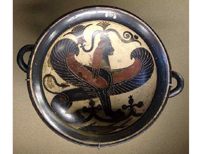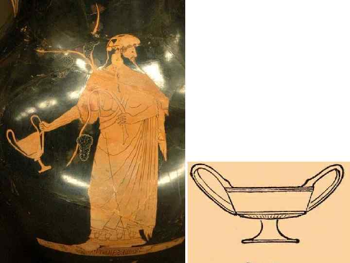 Сосуд для питья в форме кубка с двумя ручками, преимущественно на высокой ножке Считался атрибутом бога Диониса