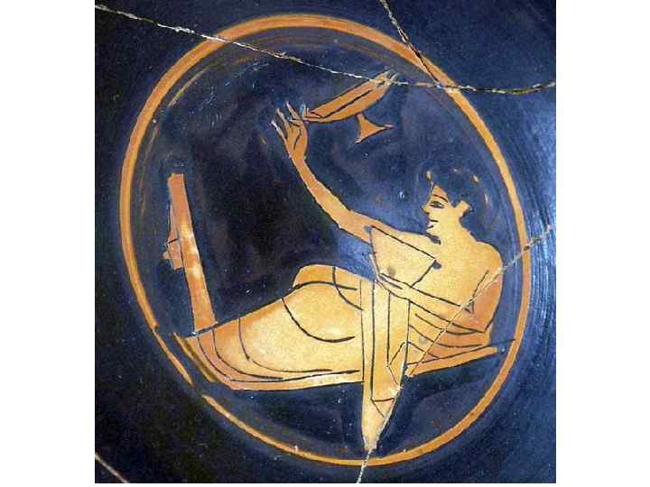 Разливали вино длинным бронзовым черпаком - "киафом". Как вы думаете, почему бронзовым, а не глиняным? А это чтоб он не разбился в пьяных руках. А куда наливали вино этим киафом? Конечным пунктом назначения служило блюдце на ножке - так называемый "килик". Оказывается, пили налитое вино чаще из таких блюдец, реже - из чашек или из кубков. А вот и килик
