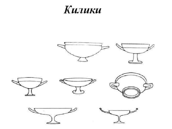 Сосуды для питья можно распределить на две категории: на чаши и кубки. Самая употребительная из чаш называлась килик