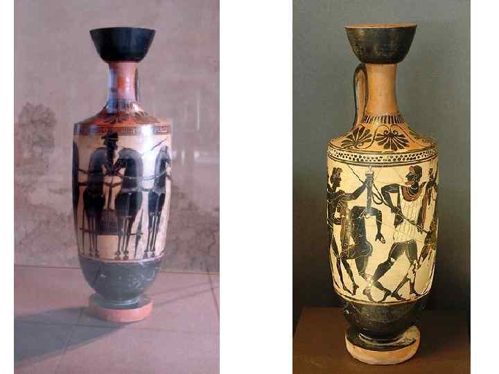Лекифы – сосуды с одной ручкой для хранения оливкового масла, которые спортсмены прикрепляли к поясу. Масло они использовали для получения ровного загара, натирая им тело. Лекифы, как правило, украшались изображениям и спортивных состязаний.