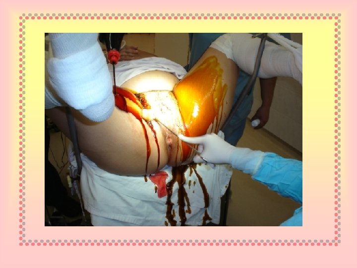 Enemas Se creia que reducían la contaminación perinatal, la infección de la madre y del niño La tasa de escurrimiento fecal no se modifica en el primer período del parto pero se reduce durante el segundo.