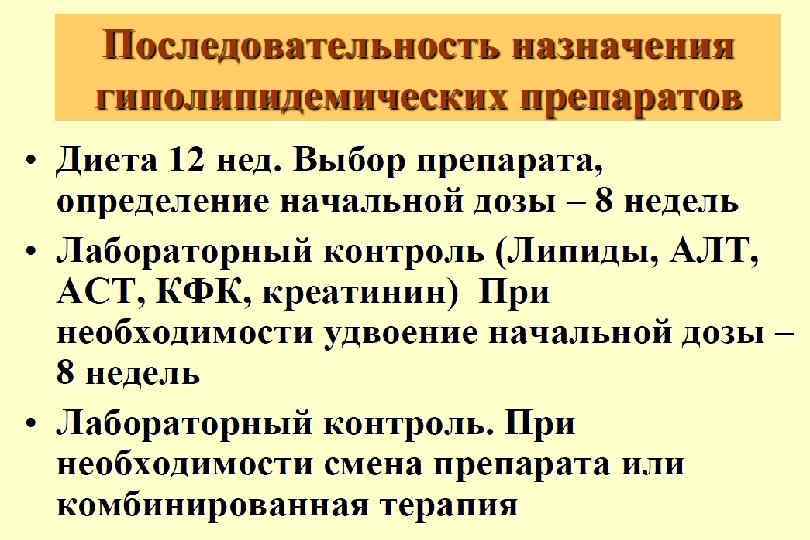 Лечение атеросклероза Лекарственная терапия по рекомендации ВОЗ должна начинаться при содержании холестерина в плазме крови более 249, 0 мг/дл (6, 5 ммоль/л) для лиц, имеющих 2 фактора риска и более 220, 0 мг/дл (5, 7 ммоль/л) при наличии ИБС и 2 факторов риска.
