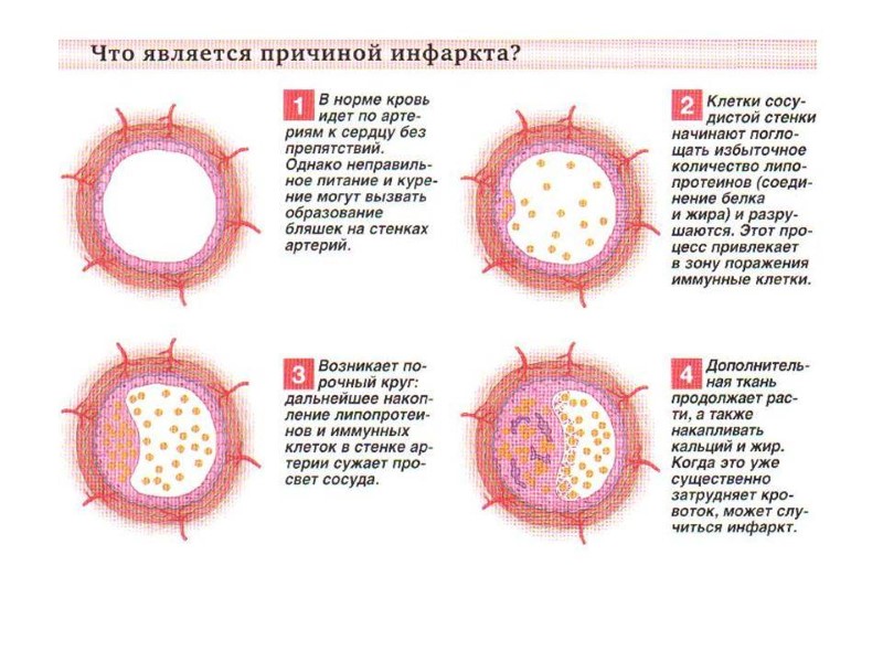 ПАТОГЕНЕЗ Сужение просвета артерий, ↓эластичности → затруднение кровотока, ↓доставка кислорода и питательных веществ → кислородное голодание тканей. ↑ холестерина, липопротеинов низкой (ЛПНП) и очень низкой плотности (ЛПОНП) → угнетение антисвертывающую систему → тромбоз→инфаркт, инсульт и т.д. агрегация тромбоцитов