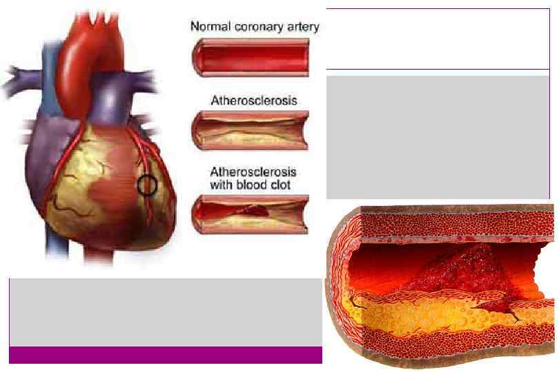 ПАТОГЕНЕЗ ИНФАРКТА МИОКАРДА Стабильная и нестабильная бляшки Стабильная Нестабильная Просвет Эндотелий Тромбоциты Липидная сердцевина Толстая фиброзная капсула Клетки воспаления Тонкая фиброзная капсула