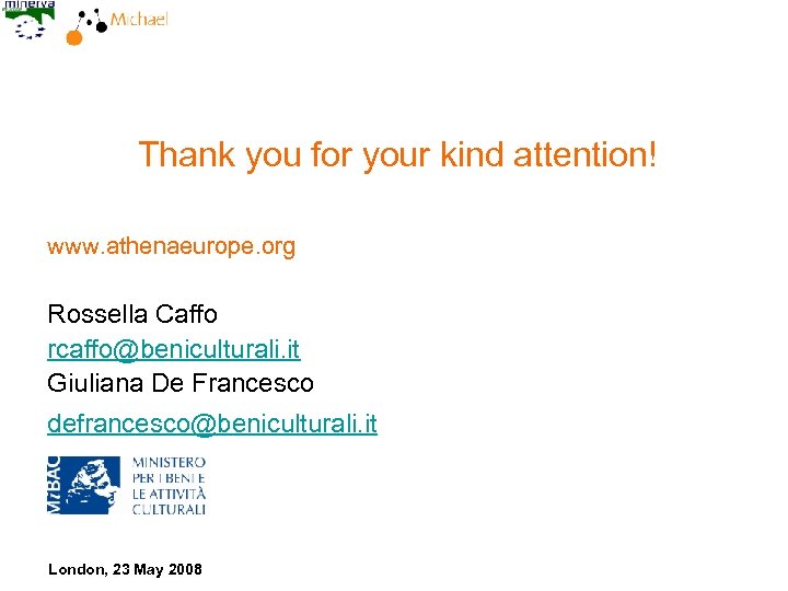 Thank you for your kind attention! www. athenaeurope. org Rossella Caffo rcaffo@beniculturali. it Giuliana De Francesco defrancesco@beniculturali. it London, 23 May 2008
