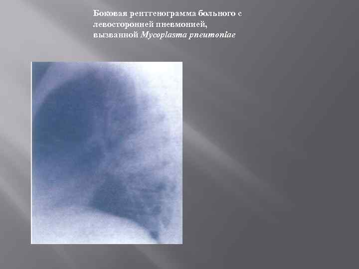 Боковая рентгенограмма больного с левосторонней пневмонией, вызванной Mycoplasma pneumoniae