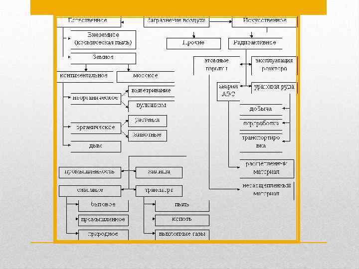 Существует два вида загрязнений атмосферы: естественное и искусственное, каждый обусловлен соответствующими источниками. Источники загрязнения атмосферы различаются также по мощности выброса (мощные, крупные, мелкие), высоте выброса (низкие, средней высоты и высокие), температуре выходящих газов (нагретые и холодные). Источники загрязнения