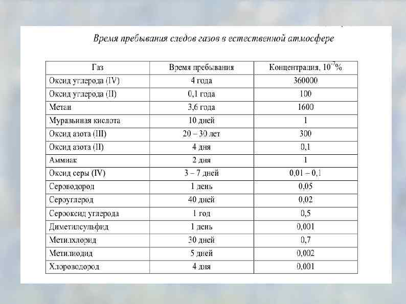 Классификация атмосферных веществ по устойчивости • устойчивые компоненты • неустойчивые компоненты • сильноизменяющиеся компоненты