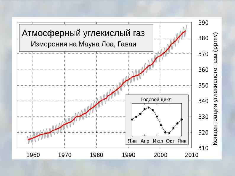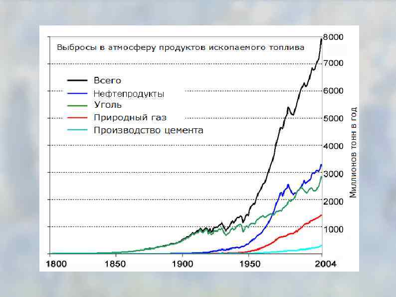 выброс углекислого газа, 109 т в год, в атмосферу Фотосинтез растений (чистая продукция). . . . — 77, 61 Фотосинтез растений на суше. . . . . — 52, 86 В том числе фотосинтез в лесах. . . . . — 33, 25 Фотосинтез растений в океане. . . . — 24, 75 Окисление микроорганизмами и животными, лесные и степные пожары. . . . +78 Средняя скорость роста атмосферного СО 2 за период с 1958 по 1976 гг. . . . . +2, 134 Современная скорость роста атмосферного СО 2. . . +2, 3 Выделение СО 2 промышленностью. . . . +5 Выделение СО 2 при уничтожении лесов: . . . . оценка по лесохозяйственным данным ФАО. . . . +1 оценка по росту культурных земель за 1950— 1970 гг. . +1, 3 оценка по сгоранию древесины и окислению гумуса. . . +1, 9 Поглощение СО 2 океаном и биосферой. . . — 4 Выделение СО 2 вулканами. . . +0, 04 Средняя за историю Земли скорость накопления карбонатных осадков. . . . -0, 01 Современная скорость захоронения углерода в донных осадках. . . . . — 0, 085 Выветривание карбонатных и силикатных пород. . . — 0, 01