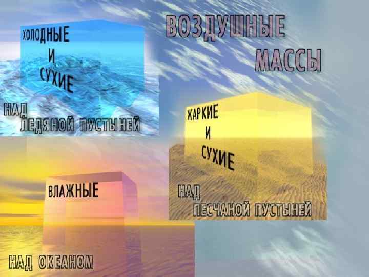 Циркуляция воздушных масс • ВМ -перемещаются по поверхности земли, переносят тепло и влагу из одних районов в другие. воздушные массы Морские континентальные