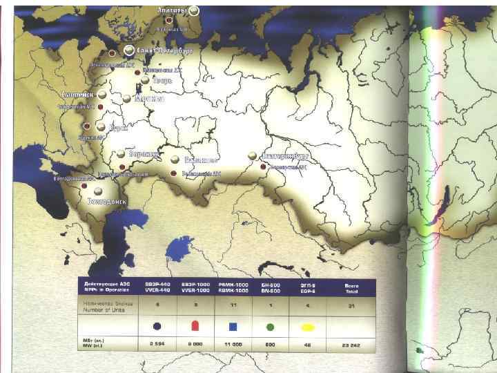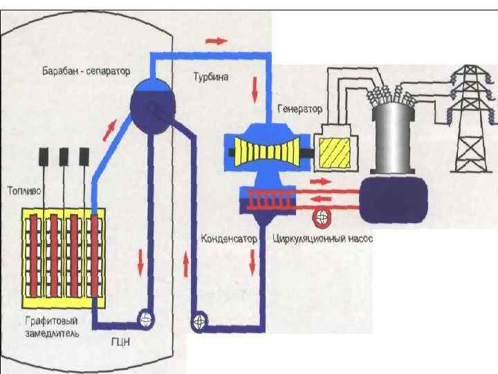 6. В МИРЕ СУЩЕСТВУЕТ ПЯТЬ ОСНОВНЫХ ТИПОВ ЭНЕРГЕТИЧЕСКИХ РЕАКТОРОВ: 1. водо-водяные реакторы с водой под давлением; 2. водо-водяные кипящие, разработанные в США и наиболее распространенные в настоящее время; 3. реакторы с газовым охлаждением, разработанные и применяющиеся в Великобритании и Франции; 4. реакторы с тяжелой водой, принятые в Канаде; 5. водо-графитные канальные реакторы, которые эксплуатировались только в СССР.
