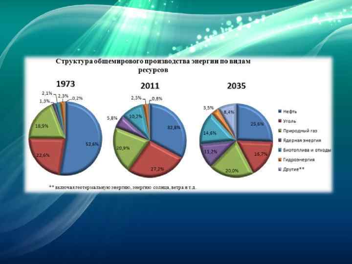В 2010 году ядерная энергия обеспечивала 2, 7% всей потребляемой человечеством энергии. Ядерный сектор энергетики наиболее значителен в промышленно развитых странах, где недостаточно природных энергоресурсов — во Франции, Бельгии, Финляндии, Швеции, Болгарии и Швейцарии. Эти страны производят от 20 до 74 % (во Франции) электроэнергии на АЭС. США на АЭС производят только 1/8 своей электроэнергии, однако это составляет около 20 % мирового производства