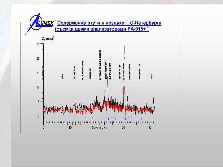 Параллельные измерения сырого и товарного газа на различных месторождений Польши (октябрь 2002 г. ) Месторождение РА-915+, мкг/м 3 MERCURY 3000, мкг/м 3 D, % Гродизск, сырой газ 110 93 +15 Млодаско, после абсорбера 34 39 -8 Немежыцы 24 23 +6 Папроць, после абсорбера 19 21 -5 Шевце, после абсорбера 9, 8 12 -18 Бониково, после абсорбера 1, 7 2, 5 -30 Уязд, после абсорбера <0, 5 0 Бук, после абсорбера <0, 5 0 Стеншев, после абсорбера <0, 5 0