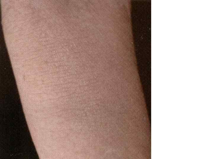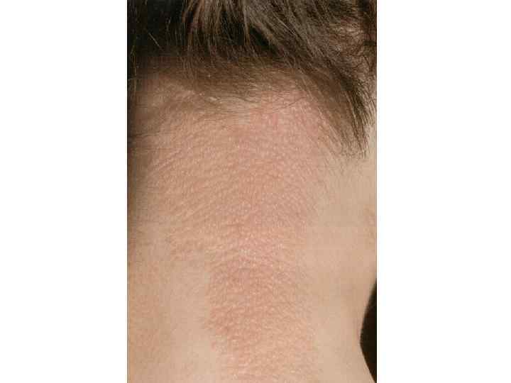 Распространённый АД ( 5 -50% площади кожи) – кожные высыпания локализируются преимущественно в области шеи с переходом на кожу предплечий, лучезапястных суставов, кистей. Процесс не ограничивается локтевыми и подколенными сгибами, а распространяется на прилегающие участки конечностей, груди и спину. Вне очагов поражения кожа имеет землисто-серый оттенок, нередко с отрубевидным или мелкопластичным шелушением. Зуд интенсивный.