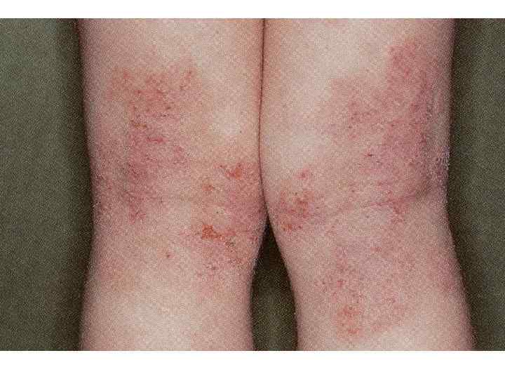 При АД средней тяжести наблюдается множественные очаги поражения на коже с достаточно выраженной экссудацией или инфильтрацией и лихенификацией, экскориациями и геморрагическими корками. Зуд умеренный или сильный. Лимфатические узлы увеличены до размеров «лесного ореха» или «фасоли» . Частота обострений 3 -4 раза в год. Длительность ремиссий 2 -3 месяца.