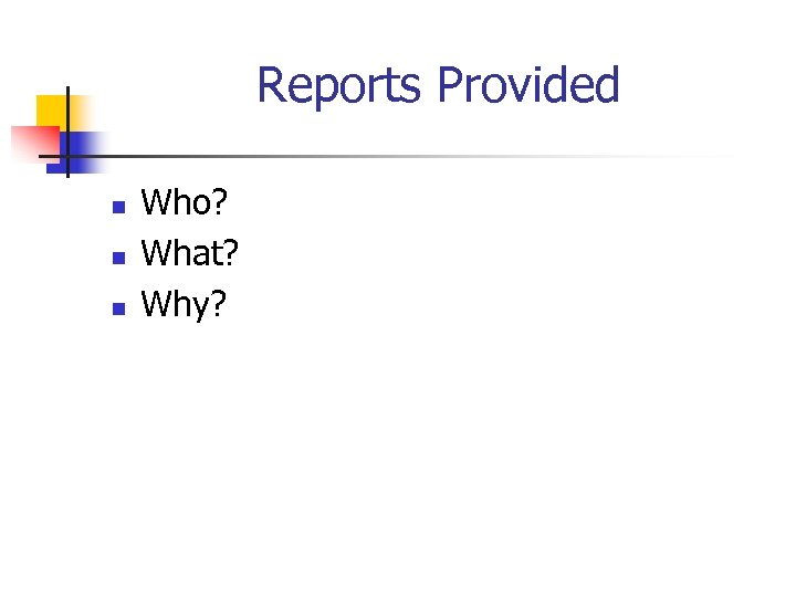 Reports Provided n n n Who? What? Why?