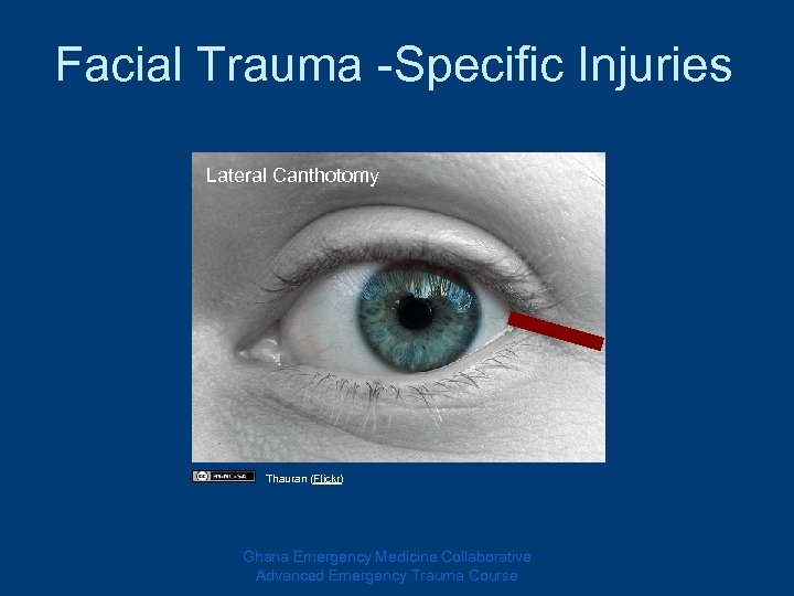 Facial Trauma -Specific Injuries Lateral Canthotomy Thauran (Flickr) Ghana Emergency Medicine Collaborative Advanced Emergency Trauma Course