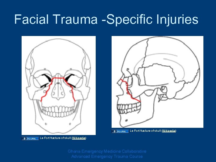Facial Trauma -Specific Injuries Le Fort fracture of skull (Wikipedia) Ghana Emergency Medicine Collaborative Advanced Emergency Trauma Course