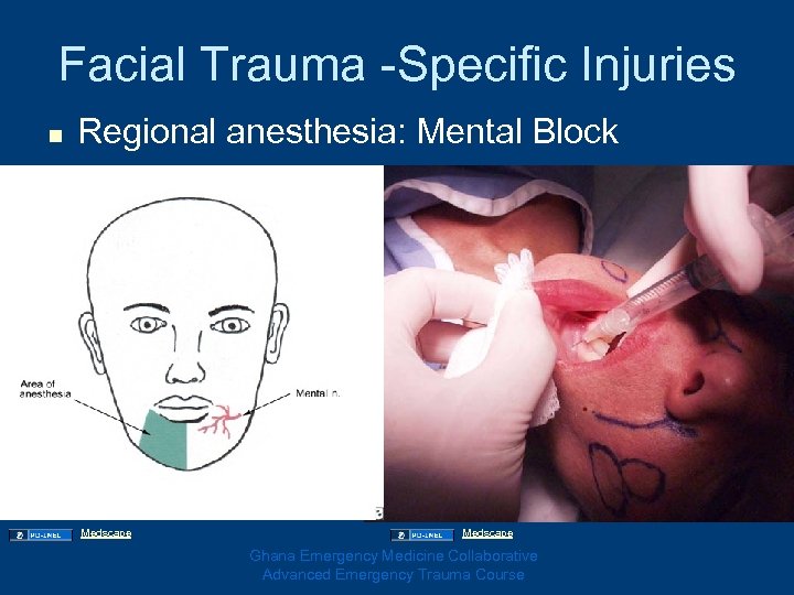 Facial Trauma -Specific Injuries n Regional anesthesia: Mental Block Medscape Ghana Emergency Medicine Collaborative Advanced Emergency Trauma Course
